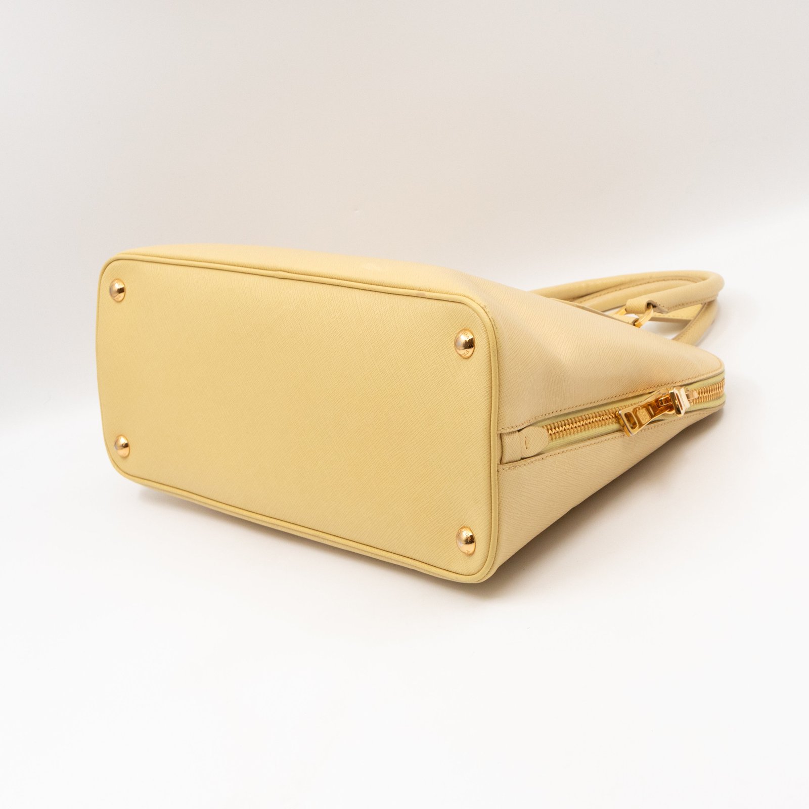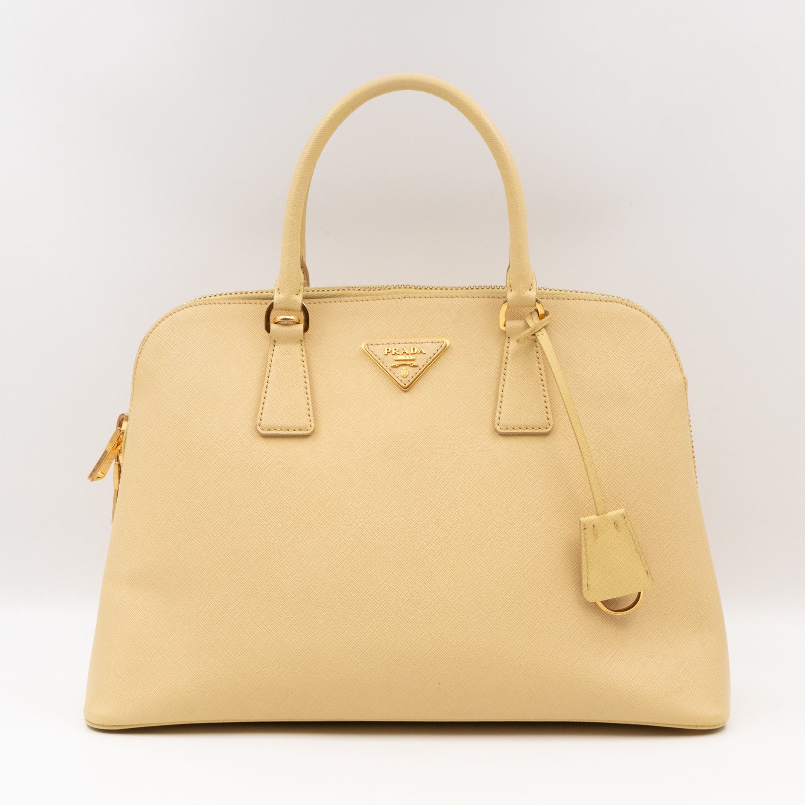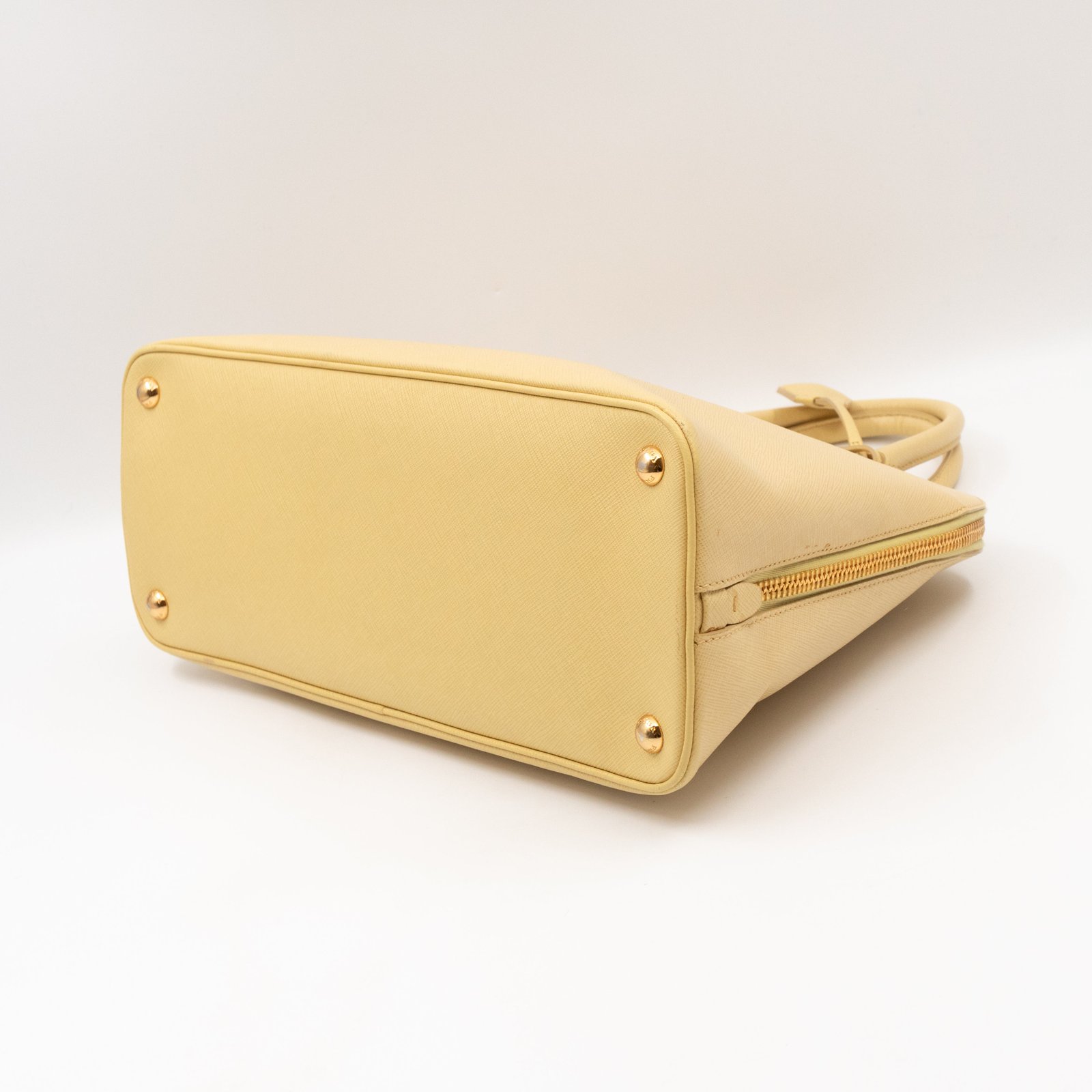 A cute large sized edition Prada Promenade crossbody bag. Made with saffiano leather in yellow, combined with gold-tone hardware. This Promenade fits all your daily items. Open to two compartments and two slim pocket.