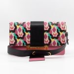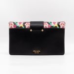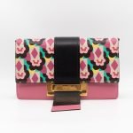 This is a Prada Multicolor Floral Print Leather Plex Ribbon Shoulder Bag from Spring/Summer 2017 Bag Collection. Crafted from peony floral print leather and gold-tone hardware for a chic finish. Opens to a black canvas interior. Carry your every day essentials in style. Pink & black reversible long strap makes this easy to use as a daily crossbody bag. The retail price is €1950.